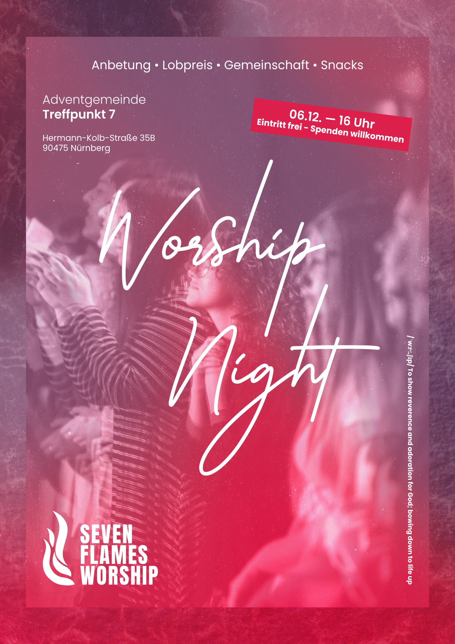 Nachmittagsveranstaltung mit Lobpreiskonzert Mit „Seven Flames Worship“. Start: 16 Uhr.